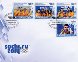 Olimpiskajā gadā jāsūta olimpiskas vēstules. Par to gādā Latvijas Pasts, kas sadarbībā ar LOK izdevis speciālu aploksni un četras markas (katra EUR 0,50 vērtībā), uz kurām redzami XXII ziemas olimpisko spēļu Latvijas medaļnieki. Šādas pastmarkas Latvijā izdod kopš 2000. gada olimpiskajām spēlēm Sidnejā.