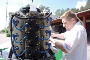 Svētdien, 25. maijā Portugālē sākas jaunā F-2000 ātrumlaivu Pasaules kausa izcīņas sezona, kurā piedalīsies trīs Latvijas piloti - Uģis Gross (Kalnciems Racing Team), Uvis Slakteris un Genādijs Tučkovs (Riga Powerboat Team). Šoreiz plašāk par pašu laivu, tās aprīkojumu un vadīšanas principiem. Modeļa lomā pērnā gada Eiropas čempiona Uģa Grosa laiva. Fotoreportāža tapusi vienā no pēdējiem…